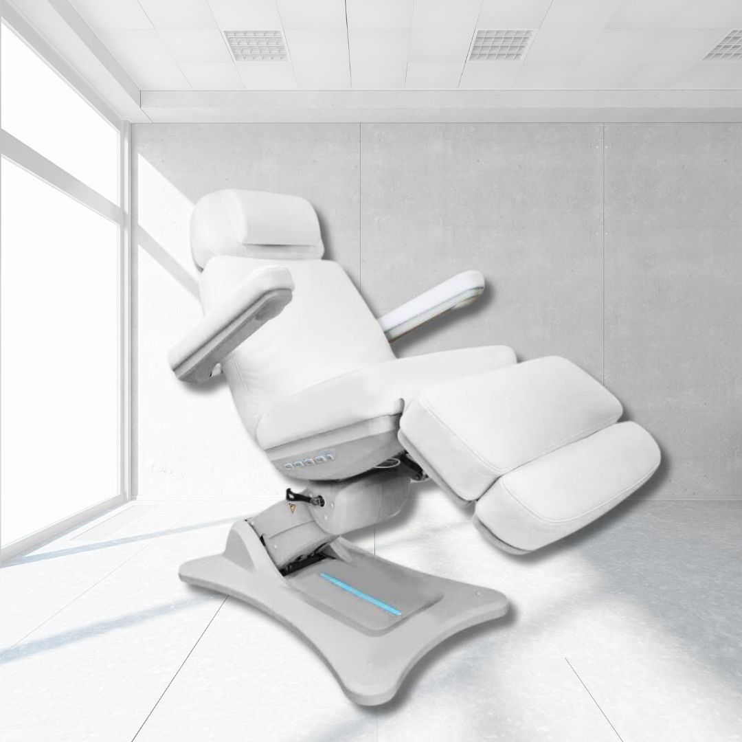 L’Empire Soft LED est un nouveau fauteuil de traitement innovant avec de nombreux extras et équipé des dernières technologies. Fauteuil de traitement très bien conçu et très confortable avec une entrée et une sortie basses et des coussins soft-line luxueux qui peuvent pivoter sur 240 degrés pour une facilité d’utilisation optimale. Équipé d’un capteur EYE-control pour un angle d’assise extra profond et plus de sécurité, ainsi que d’un arrêt d’urgence. Équipé de série de 4 moteurs, d’une lumière LED réglable en différentes couleurs, d’une mémoire (2 modes programmables) et d’un chauffage. Les fonctions peuvent être commandées à l’aide des boutons situés sur le dossier et le panneau d’assise, ainsi que manuellement. Le fauteuil est également doté d’un bouton de réinitialisation, qui permet de le remettre en fonction par simple pression sur un bouton. Appui-tête réglable avec narine et coussin et accoudoirs repliables pour une facilité d’utilisation optimale. Revêtement en PU médical pour un entretien facile.