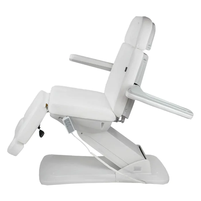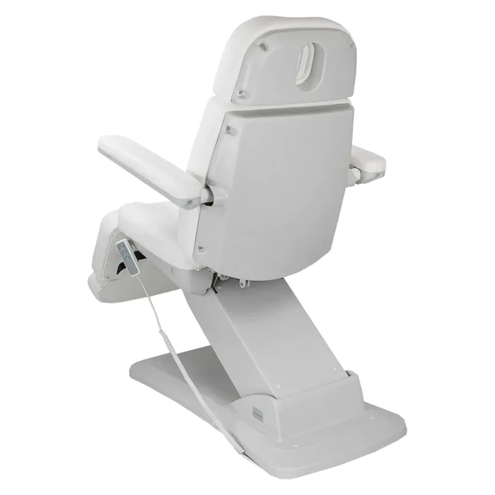 Le fauteuil de soins Oregon Beauty avec narine est équipé de 3 moteurs pour le réglage de la hauteur, du dossier et de l’inclinaison, ainsi que d’une commande manuelle. Le piètement est réglable au moyen d’un vérin à gaz et est extensible. Le revêtement est en cuir artificiel EPU écologique (cuir PU sans solvant).
