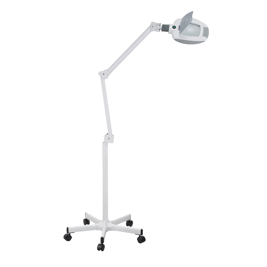 Lampe loupe contemporain avec un design frais et facilité d’utilisation. La lampe a une lentille 3 dioptries avec des lumières LED et un capot de protection. Belle finition sans fils et ressorts extérieurs. Avec trépied.