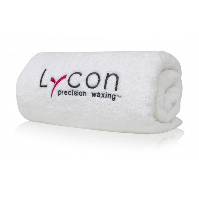 Accueillez vos clients dans votre salon de cire LYCON avec une serviette blanche originale sur votre chaise de traitement, arborant le logo LYCON. Fraîche, blanche et prête pour le traitement à la cire !