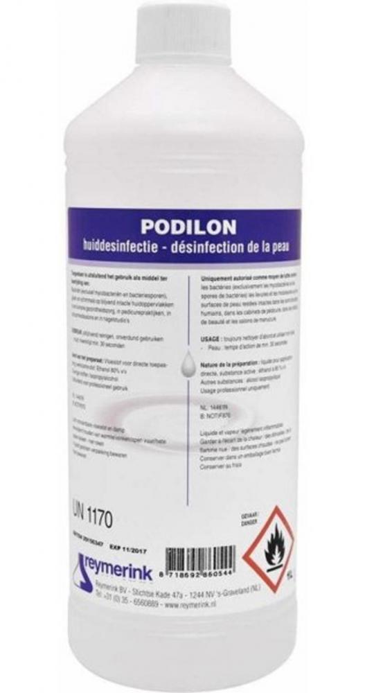 Podilon est une lotion désinfectante pour la peau à utiliser sur une peau intacte (également les mains et les pieds). Le Podilon contient une combinaison de 80% (v/v) d’éthanol et d’alcool isopropylique.