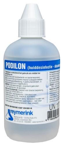 Podilon est une lotion désinfectante pour la peau à utiliser sur une peau intacte (également les mains et les pieds). Le Podilon contient une combinaison de 80% (v/v) d’éthanol et d’alcool isopropylique.