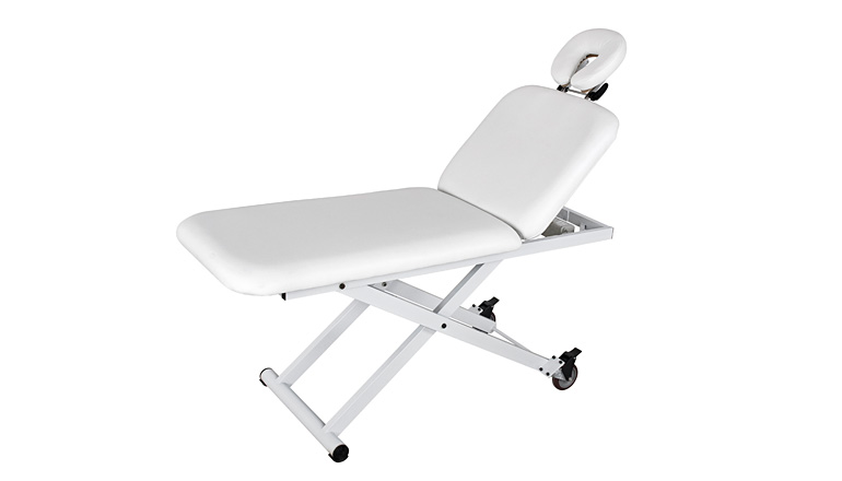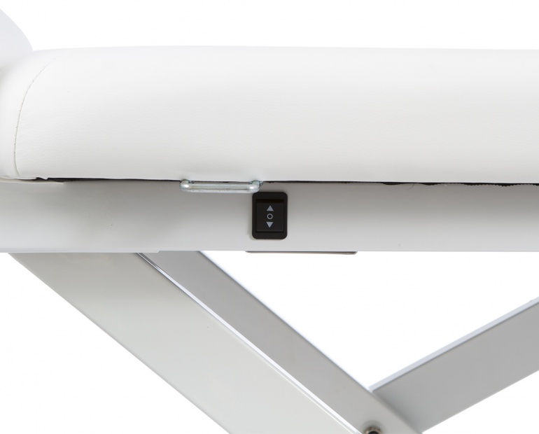 Table multisectorelle de haute stabilité avec 2 parties. Inclinaison du dossier réglable mécaniquement et réglage de la hauteur par 1 moteur électrique. Repose-tête réglable avec trou visage. Structure métallique robuste et avec des roulettes pour faciliter son déplacement. Revêtement en PVC blanc de haute qualité et facile à nettoyer.