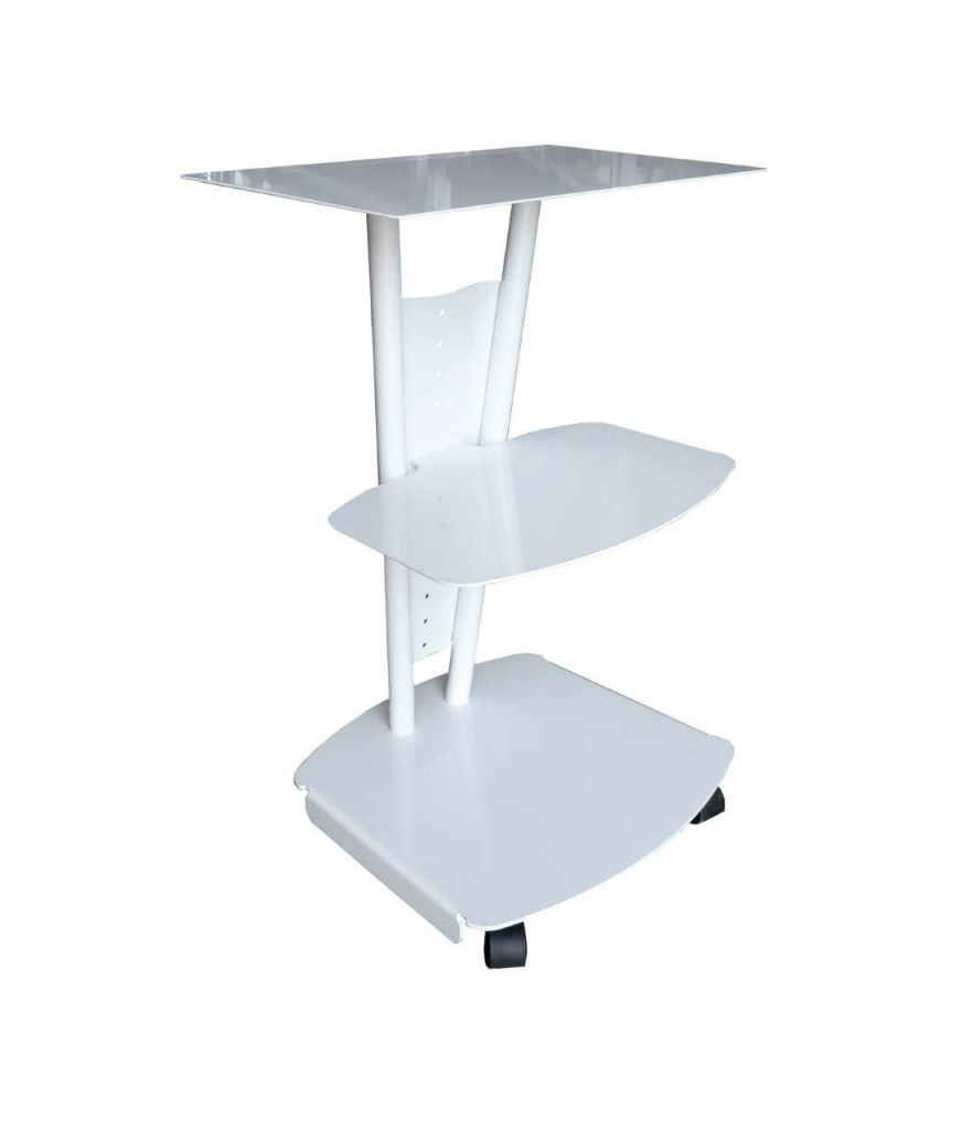 Zeer degelijke en stevige trolley met groot blad bovenaan om uw apparaat (bvb IPL, microdermabrasie) op te plaatsen.