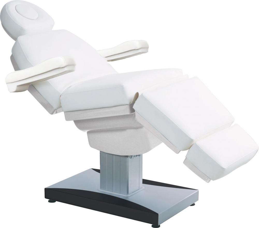 Volledig elektrisch bedienbare behandelstoel met 4 motoren. Deze stoel heeft extra zachte ergonomische kussen met meer volume voor meer comfort en luxe. Deze behandelstoel wordt steeds geleverd met regelbare verwarming (2 standen) en uitschuifbare beendeelverlenging. Basis: aluminium look. Inclusief handbediening.