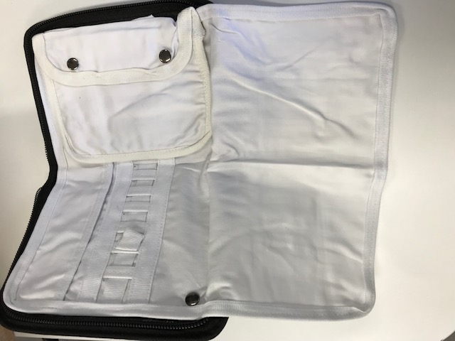 Instrumentenetui met uitwasbare hoes. Hoes uit stof en buitenkant uit skai.