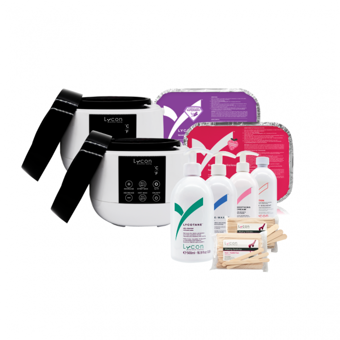Een handige Professionele starterskit voor de waxbehandeling gezicht, oksels, bikinilijn en Brazilian Waxing. Alles wat je nodig hebt voor het perfecte resultaat in 1 professionele wax kit. Een 100% haarvrij en zacht resultaat met de sterke Hot wax, voor de meest stugge haren, en de Lycojet, voor de verfijnde donshaartjes.