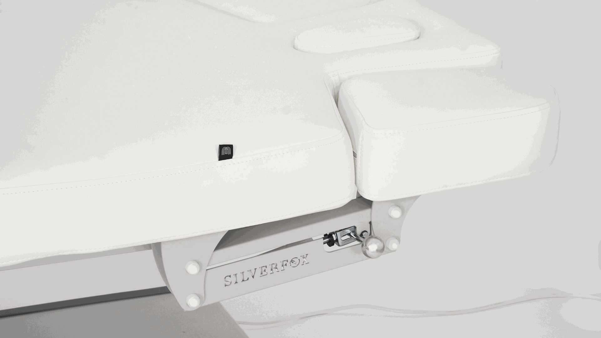 SPA-massagebank met 3 motoren die de hoogte, de kanteling van het rugdeel en het beendeel verstellen. Witte PU coating. 3-delige matras uit één stuk. Uitgerust met verstelbare armsteunen en hoofd met neusgat. Onderstel met verwisselbare kleuren LED-verlichting, waardoor het aan elke cabine kan worden aangepast.