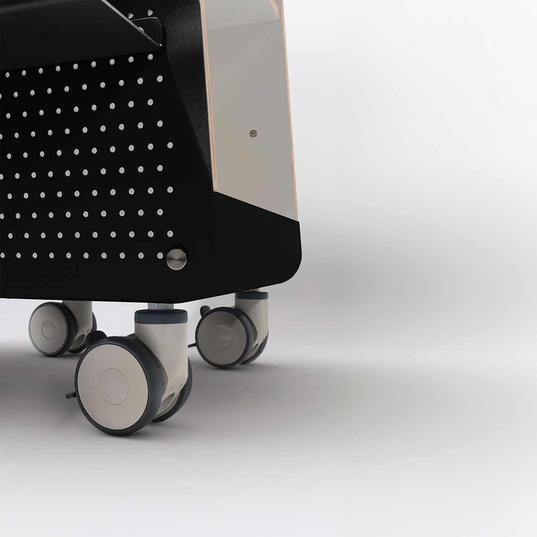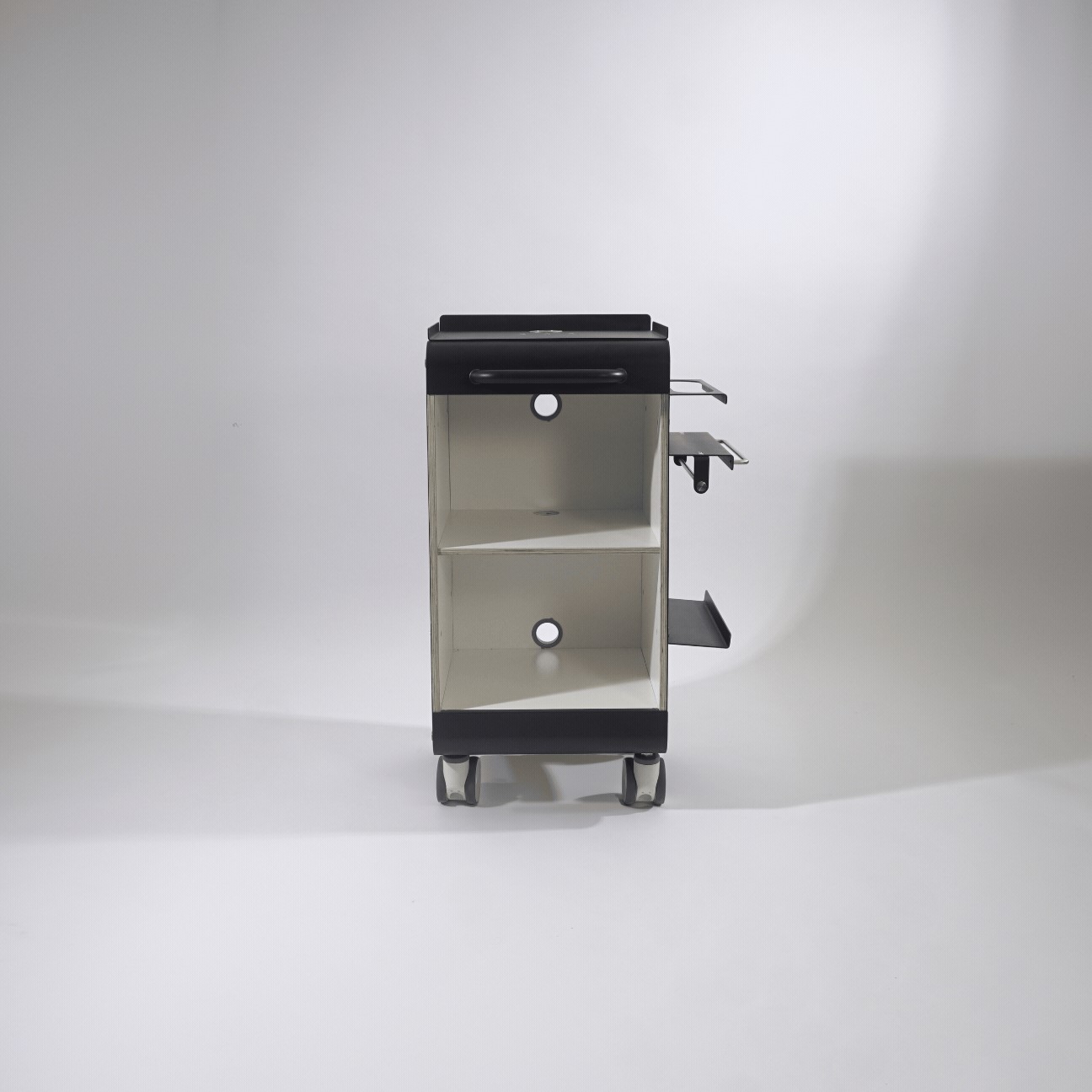 Topkwaliteit trolley met ultrastevig ontwerp, ideaal om uw apparatuur op te plaatsen. Uitgerust met 4 wielen die 360º draaien en een handgreep vooraan of achteraan. Ruime opbergruimte en zijkanten met geperforeerd metalen paneel, ook voorzien om accessoires op te plaatsen. Gemaakt van geschilderd ijzer en multiplex met melamine plaat op de buitenkant.